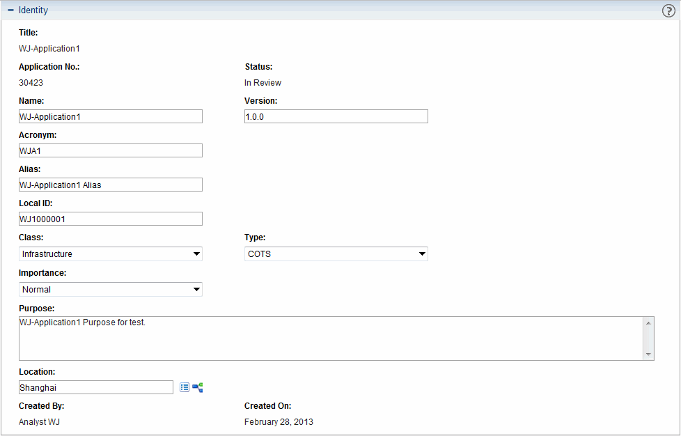 Figure A-1. Application Identity section