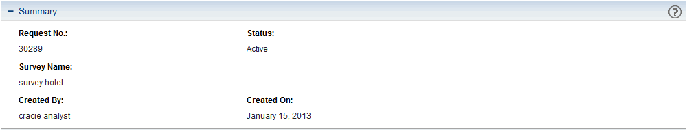 When creating, searching for, or editing a survey, enter or update information in the following sections: