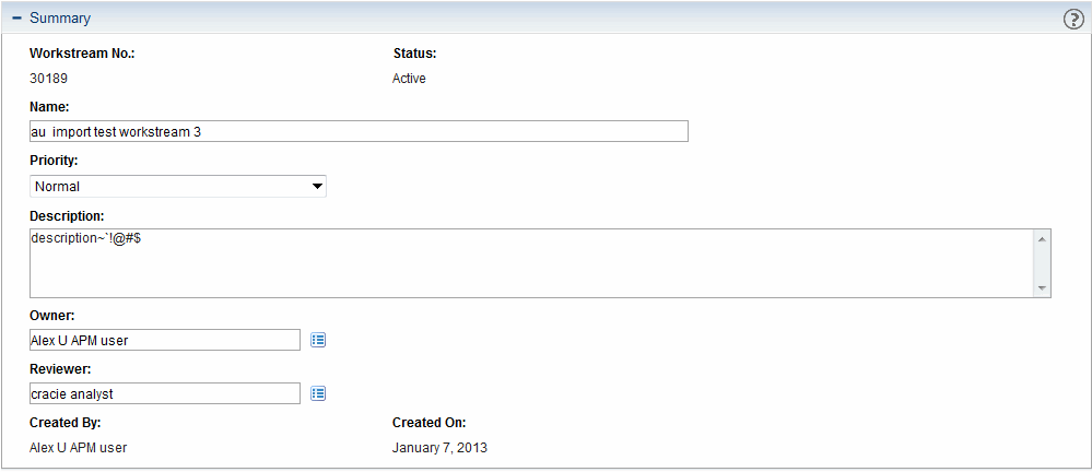When creating, searching for, or editing a workstream, enter or update information in the following sections: