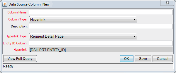 Figure 2-8. Hyperlink column type in the Data Source Column window