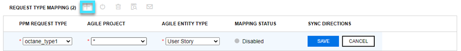 - Make sure the OpenText Software Delivery Management agile entity type is mapped to a PPM request type and the mapping is enabled.