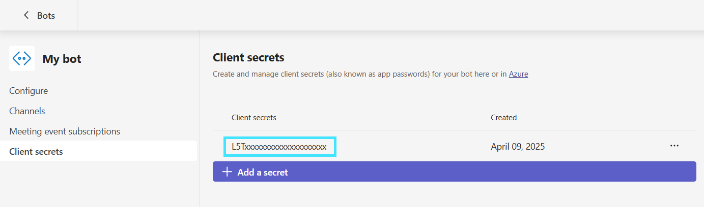 - Client Secret: The client secret of your Microsoft Teams bot.