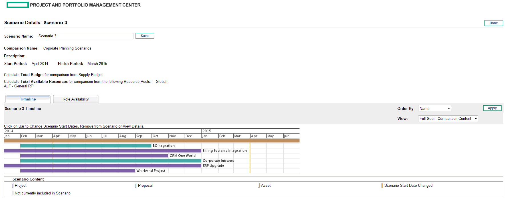 For example, suppose the portfolio manager changes the start date for the Expand to Europe proposal on the Timeline tab to accommodate some scheduling conflicts. The manager likes the way the proposal fits, opens it, and changes its Expected Start Date to match the scenario.