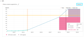 The KPI forecasting chart helps you make reasonable forecasting about business value. For details, see KPIs forecasting. To view the KPI forecasting chart, from the drop-down list in the upper-right corner of the KPI section, select Forecast. |
