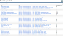 Clicking a specific exception type link, for example, the Unassigned Effort link, all the tasks that have violated the corresponding exception rule are listed. In this case, the exception rule is: Some effort is unassigned and the scheduled start date occurs in xx days.