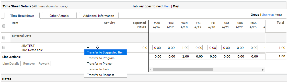 Effort you logged for agile projects and imported to PPM are collected as time sheets external data. The external data by default is not linked to any PPM work items and is not used to calculate the cost of any work items. Transferring external data to PPM work items builds relations between them.