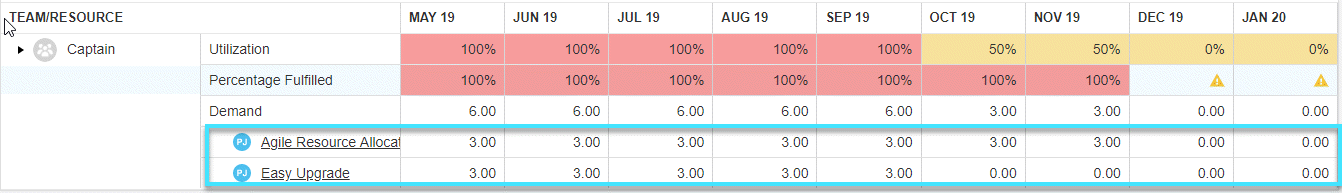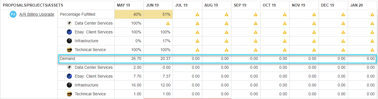 Project view. Help analyze whether the demand resource from entities (projects, proposals, and assets) are fully fulfilled by your team.