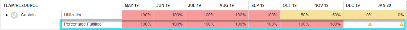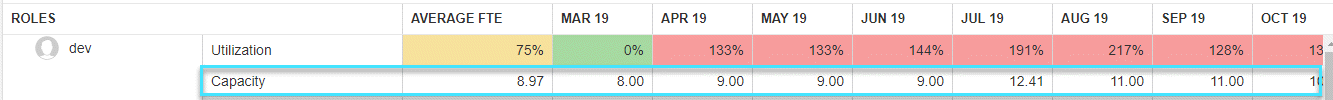 - Capacity: Sum of capacity of the team's direct resources that belong to the role