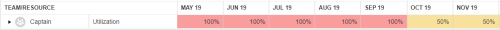 When you first open team Heatmap, it is opened in the Team/Resource view displaying Utilization data only.