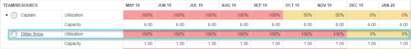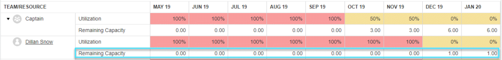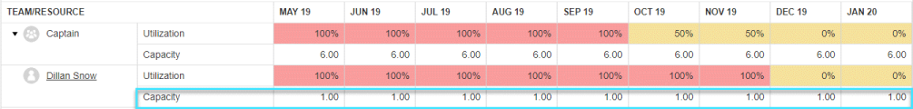 Note: For team resources that do not specify role, their capacity is not counted in this view.