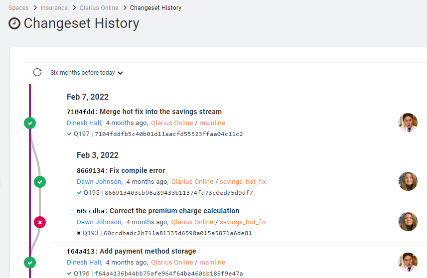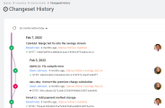 Changeset history now includes a vertical graph with changeset health indicators and tooltips. For details, see View changeset history. |