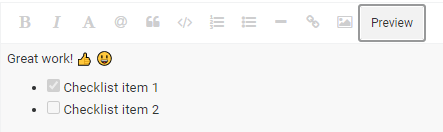 You can now use emojis and checkbox lists in comments, descriptions, and notes. PulseUno supports the CommonMark 0.30 specification of Markdown. For details, see Markdown syntax reference. |