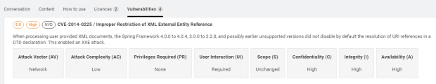 For better visibility, each vulnerability is displayed as a set of vulnerability parameters and is color-coded to indicate the severity level. |