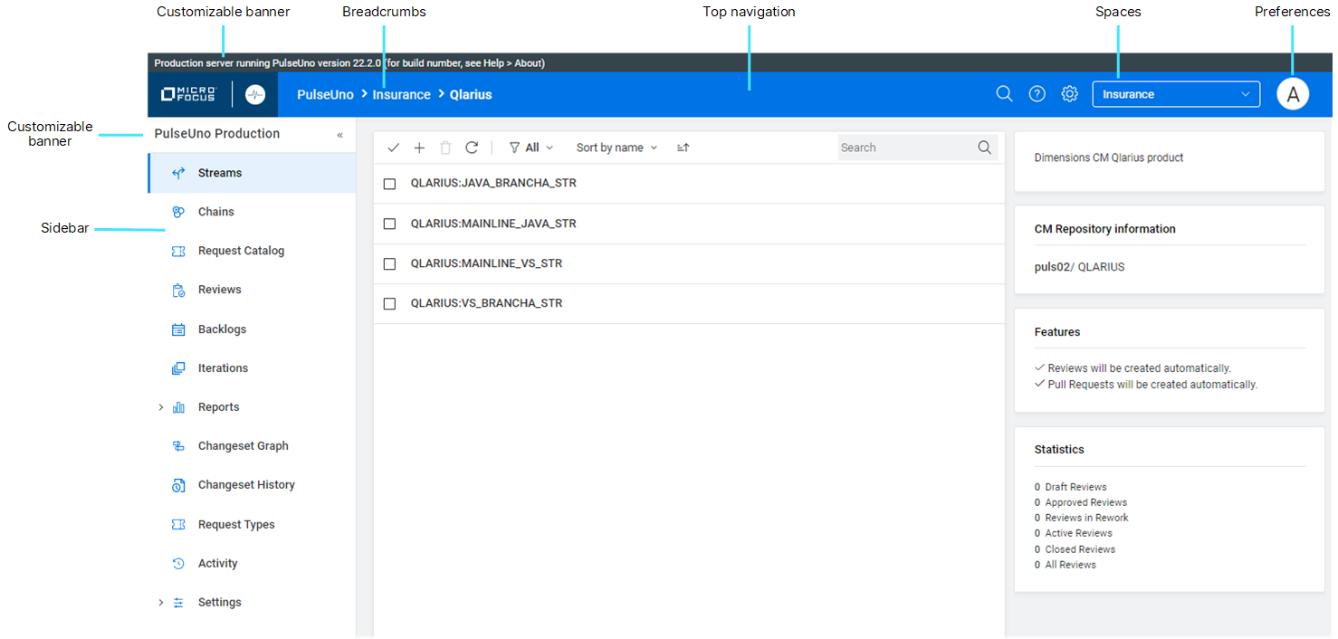 The top navigation has a new fresh look. It includes breadcrumbs to reflect your current location in PulseUno, while the Spaces and My Work areas have moved: