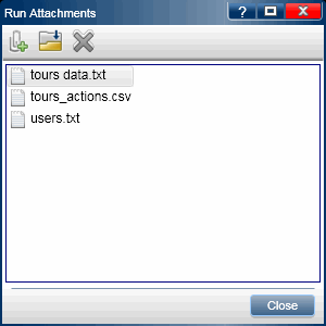 This dialog box displays run attachments, and enables you to add, edit, or remove attachments (not available for business component steps).