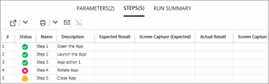 Steps tab (Run Area)