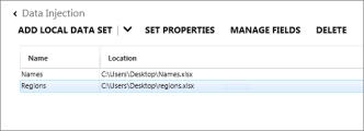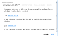 This tab enables you to define the data sets to be available for data injection during a test run. Data sets can be .xls, .xlsx, or .csv files.