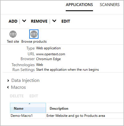 . Expand the Macros section, select a macro and click Edit.