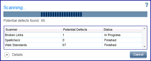 This window enables you to monitor the status of each selected scanner during the scan. It also displays the number of potential defects found by each scanner.