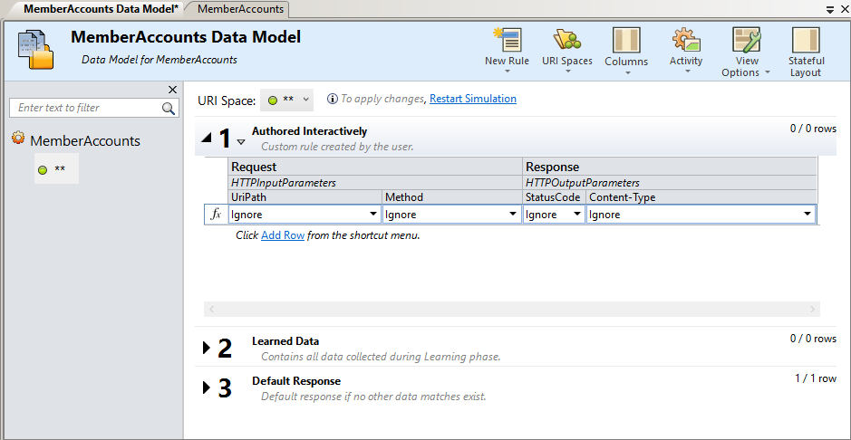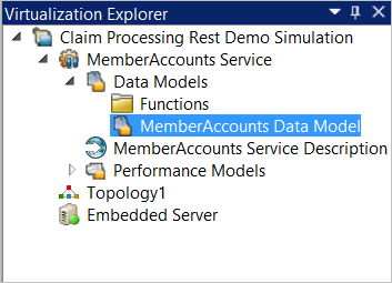 Open the Data Model editor for the default data model, by expanding the virtual service in the Virtualization Explorer, and double-clicking the Member Accounts Data Model node.