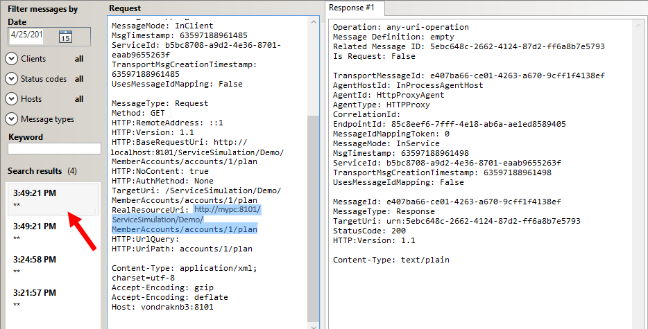 - Request Message - click Logged message to get the request message you selected earlier in the message viewer.