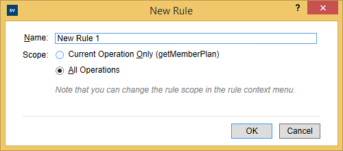 Depending on your needs, you may need to create a general rule (valid for all virtual service operations) or a specific rule which applies to a specific service operation (or subset of service operations). When you select a new rule, you specify its scope.