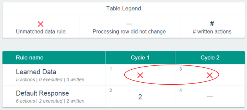 6. The simulation report indicates that the Learned Rule did not match any data during simulation