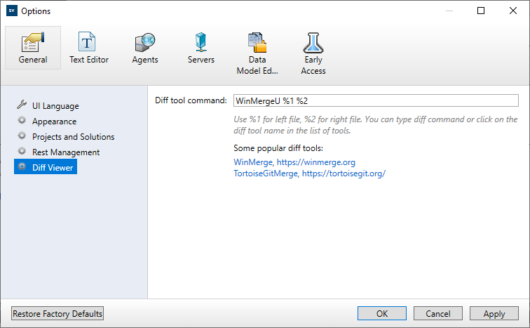 You can use a custom tool by providing a path to an executable with appropriate parameter syntax. You can use %1 and %2 placeholders for filenames containing left and right messages within the Message Log Viewer. |