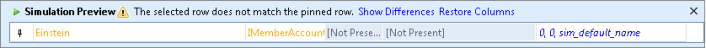 Pinned. Simulation Preview will continue to display on the selected row while comparing it to the row selected in the Data Model Editor table. Select a different row in the Data Model Editor table in order to compare the two rows. |