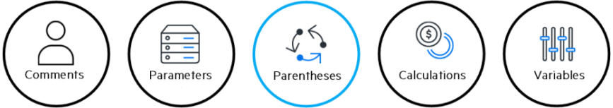 Comments (image map) Parameters (image map) Parenthesis (image map) Calculations (image map) Variables (image map)