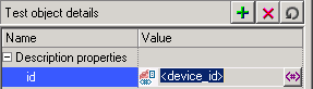 In the object repository, the value for the id description property is set to device_id.