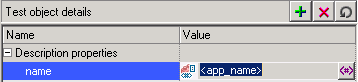 In the object repository, the value for the name description property is set to app_name.