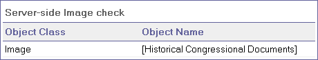 Guideline 1.2 of the W3C Web Content Accessibility Guidelines requires you to provide redundant text links for each active region of a server-side image map. Guideline 9.1 recommends that you provide client-side image maps instead of server-side image maps except where the regions cannot be defined with an available geometric shape. When you select the Server-side Image check, OpenText Functional Testing checks whether the selected page or frame contains any server-side images. If it does not, the checkpoint passes. If the page or frame does contain server-side images, then the results display a warning and a list of the server-side images so that you can confirm that each one answers the guideline requirements. For example: