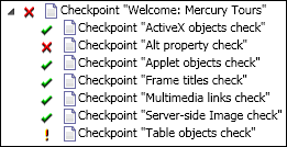 When you include accessibility checkpoints in your test, the Run Results Viewer displays the results of each accessibility option that you checked.