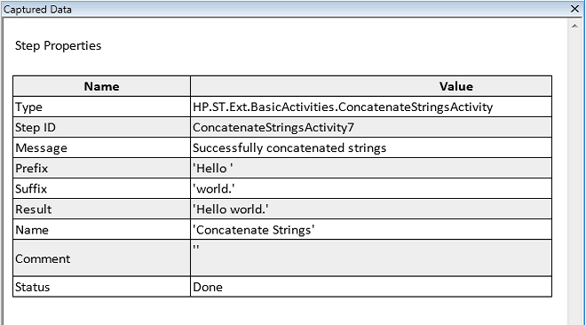 The contents of the Captured Data pane differ depending on the level you select in the Run Results tree in the left pane.