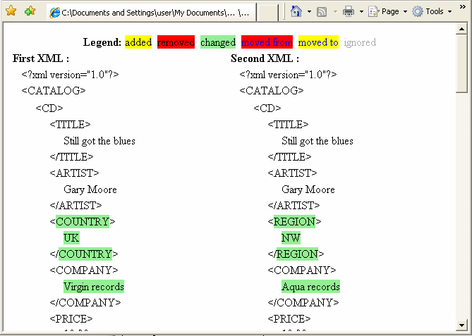In the upper part of the Captured Data pane, click the link Report File link to open the complete comparison report in an external browser.