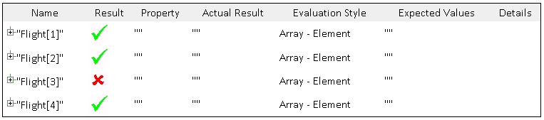 The checkpoint report opens in a separate browser window and provides details about the checkpoints in each of the array elements. You can expand each checkpoint to see what its expected and actual values were.