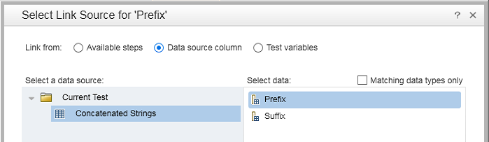 In the Select Link Source dialog, select the Data source column option. You'll the see the Concatenated Strings table listed in the data sources below.