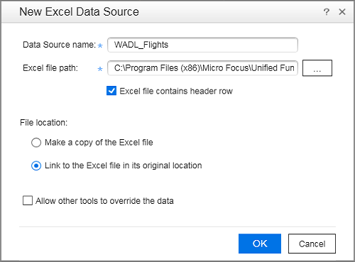 Click OK to add the Excel data to your test.