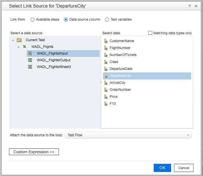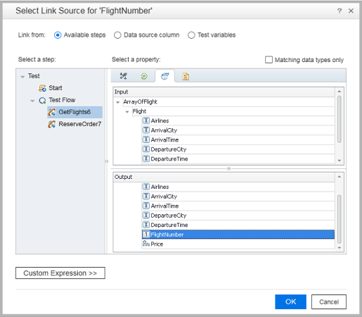 4. In the Select Link Source for 'FlightNumber' dialog: