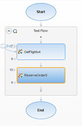 3. In the Toolbox pane, expand the FlightOrders node, and drag a ReserveOrder method to the canvas to add the second step.