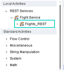 1. In the Toolbox pane, expand the Local Activities > REST Services > Flight Server > Flights_REST > Flights node.