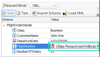 5. Click OK for OpenText Functional Testing to update the FlightNumber value as parameterized from the GetFlights step output.