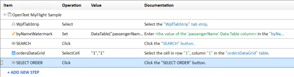 WpfWindow("OpenText MyFlight Sample").WpfButton("ORDER").Click