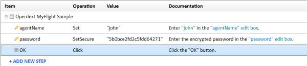 This procedure describes how to create OpenText Functional Testing test steps for logging in to the MyFlight app.