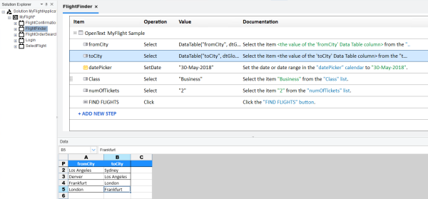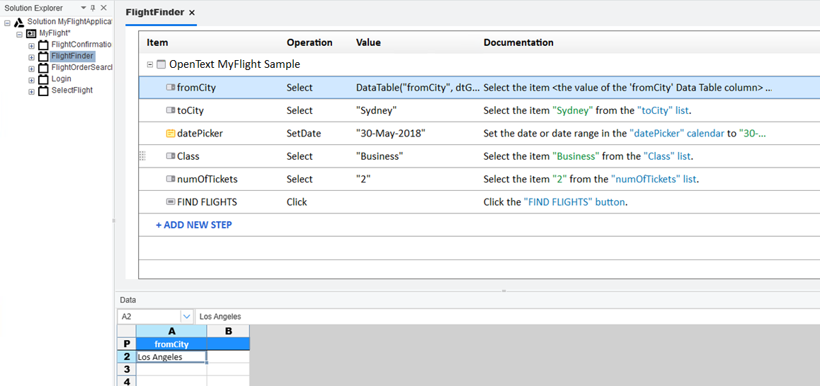 1. Start with the MyFlightApplication solution open in OpenText Functional Testing.