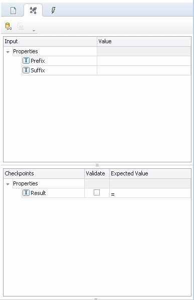 When a test step is selected, this tab is displayed. You can use the tab to specify input and checkpoint properties for the selected test step.