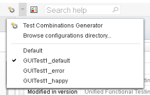 If you are working in a GUI test, access the configuration files for your test from the Test Combinations Generator button in the OpenText Functional Testing toolbar.