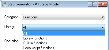 • All. Displays all functions relevant in the scope from which you opened the Step Generator.