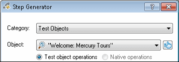 • Test Objects. Enables you to select a test object and operation for the step (for tests only). For details, see Test Object Category.
